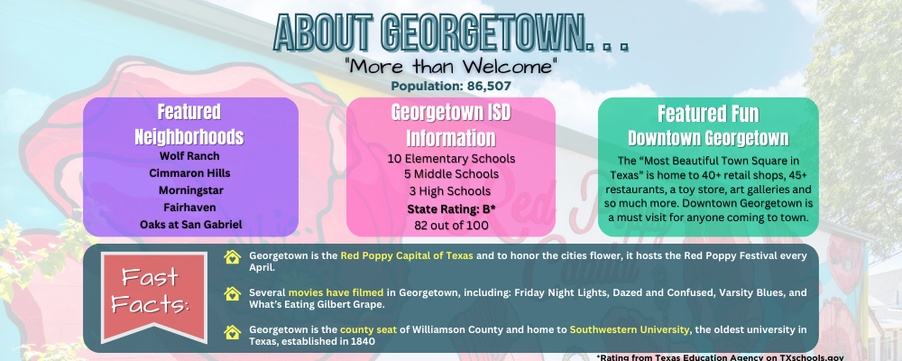 With a population hovering around 86,507, according to the U.S. Census Bureau population estimation in July 2022, Georgetown offers the perfect mix of small-town charm and big-c...