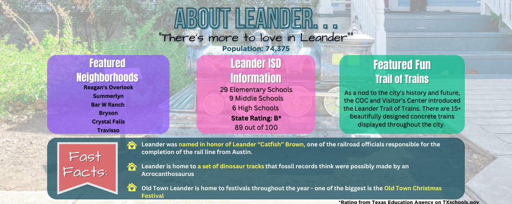 Happy Thursday y'all – we're headed to our next town in our City Spotlight series. Let's talk about Leander, Texas – a hidden gem located in Williamson County, just a hop, skip, and a jump away from Austin. Now, if you're thinking, "Leander who?" you're in for a treat. This isn't just another sleepy suburb; it's a vibrant city with a small-town heart and a growth spurt that's off the charts!