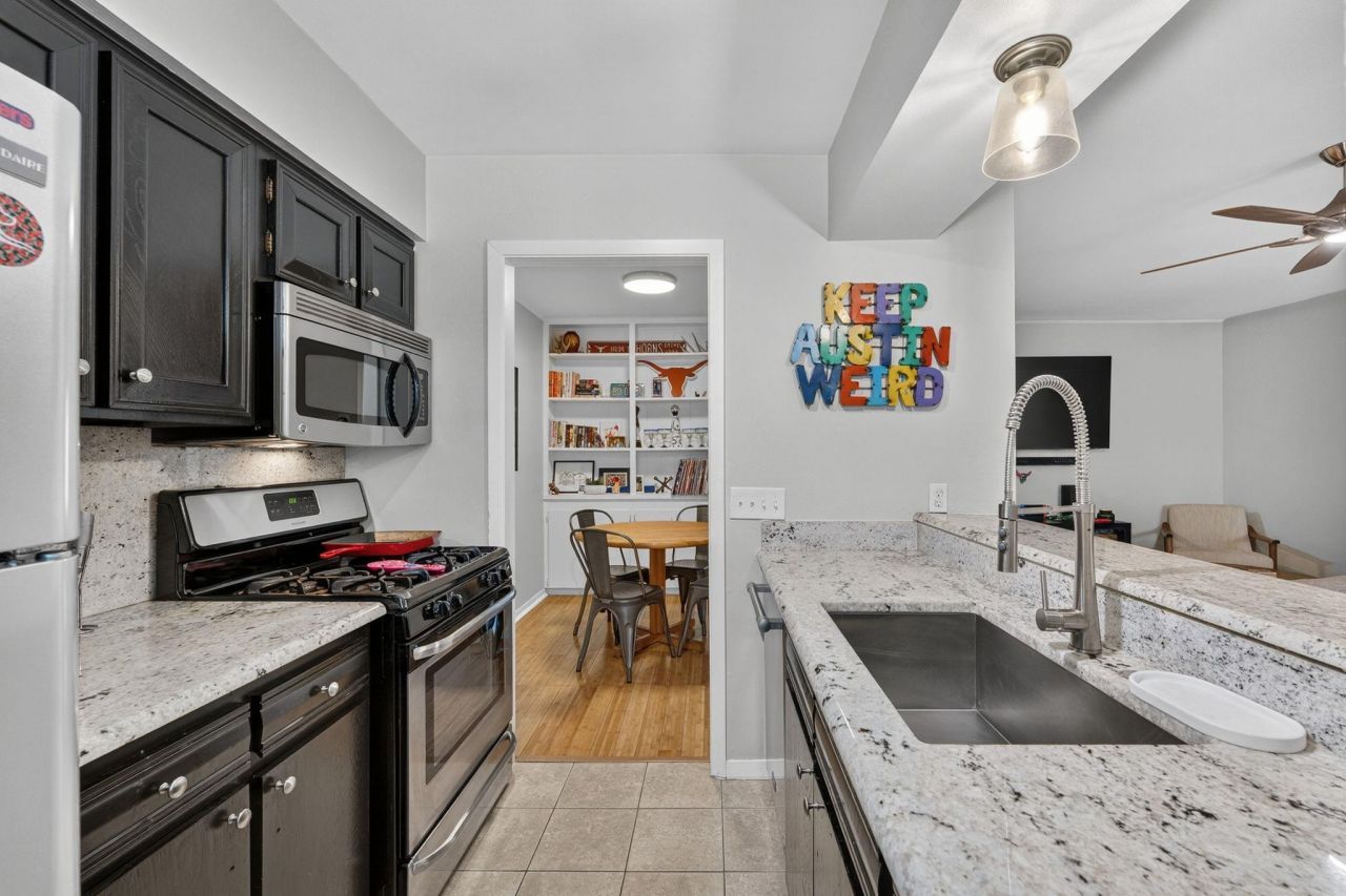 Searching for the perfect blend of iconic Austin charm and modern luxury? Look no further than this recently updated 1-bedroom, 1-bathroom oasis in the heart of the ultra-desirable 78704 zip code. Nestled in the tranquil, tree-shrouded Barton Hills neighborhood, Unit 206 is and end unit offering 761 sq. ft. of bright, sophisticated living space designed for both comfort and style. Step inside to a well-maintained, light-filled floor plan featuring a spacious living area, beautiful wood floors, IN UNIT washer & dryer!!, dining area with built-ins, and a contemporary kitchen that shines with granite countertops and stainless appliances. The spacious primary bedroom is a true retreat, boasting bay windows, 2 separate closet spaces, and a new fully remodeled primary bathroom! Located on the second floor of a boutique, two-story community, youll enjoy peaceful views of the pool and surrounding green space. The complex features a pool, BBQ & grilling area, assigned parking, and you can also enjoy google fiber high speed internet. Best of all, you are just steps away from Zilker Park, Barton Springs Pool, and Lady Bird Lake with miles of walking, hiking, and biking trails. The HOA allows for 30-day+ leases, and covers water, gas, trash, pool, and common area maintenance, allowing you to spend your weekends walking Zilker Park and trails around the lake, or enjoying dining and entertainment on nearby South Lamar. This is a prime location and a must see!!