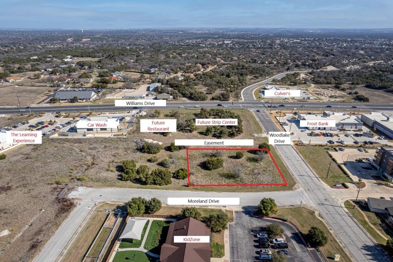 One of the fastest growing areas of Georgetown and Williamson County. New growth corridor. Please view flyer for traffic counts and demographics. Easy access with a light at Williams @ Woodlake. Zoned local commercial allowing for retail, office, professional, medical, food and education. Survey, demographics and commercial flyer in attachments.