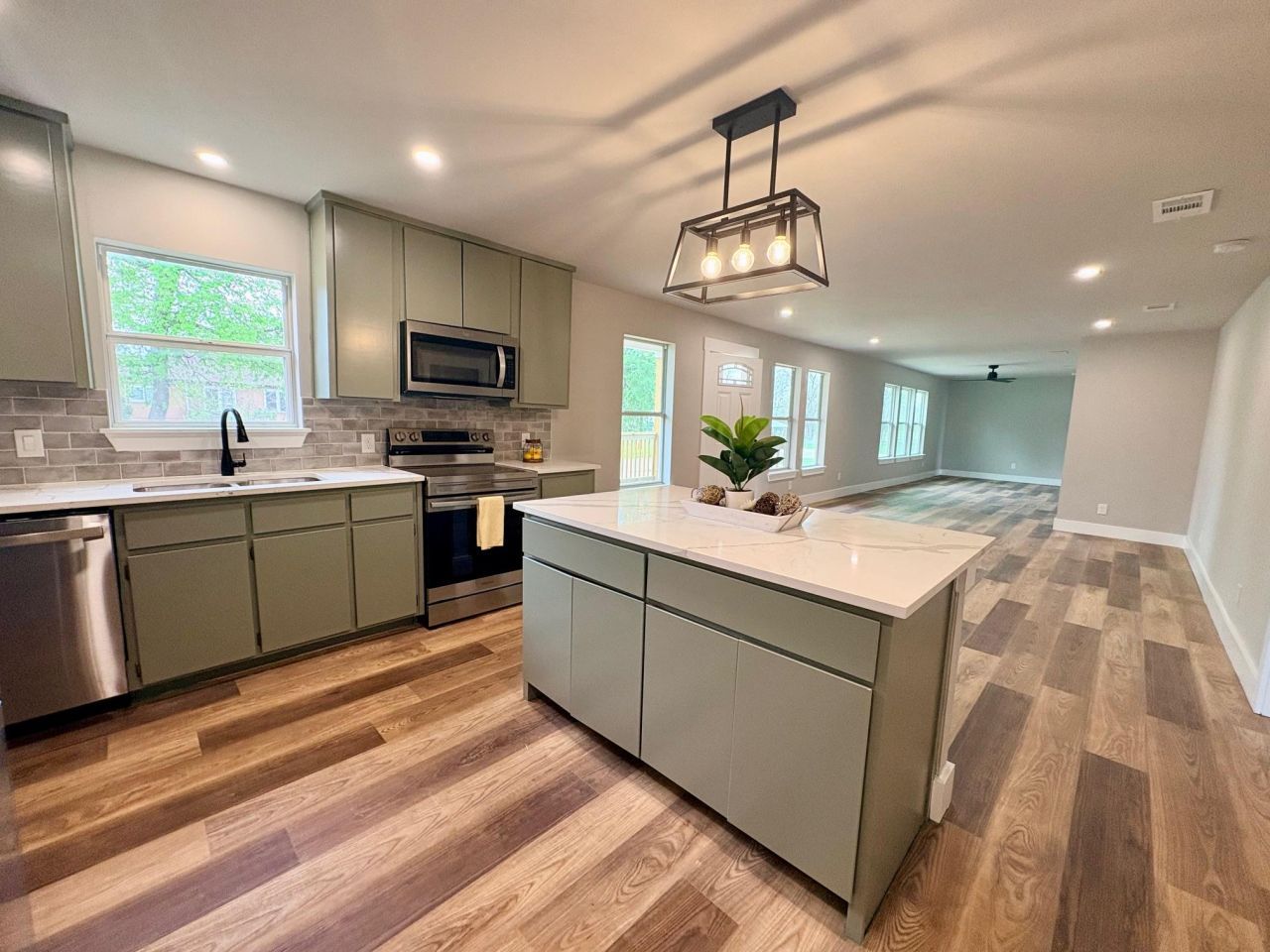 This beautiful 3 bedroom, 2 bath home with approximately 1,520sf of living space has been completely remodeled and offers a seamless blend of style and functionality that's sure to impress! From the sleek fixtures to the high-quality finishes, every detail has been carefully selected to create a space that's both beautiful and functional. New metal roof, central HVAC system, cabinets, flooring, appliances, light fixtures, interior and exterior paint, porches, electrical, plumbing, spray foam insulation, and a huge primary bedroom. The home sits on a large corner lot with a fenced in back yard perfect for family gatherings and relaxation. Come check it out!