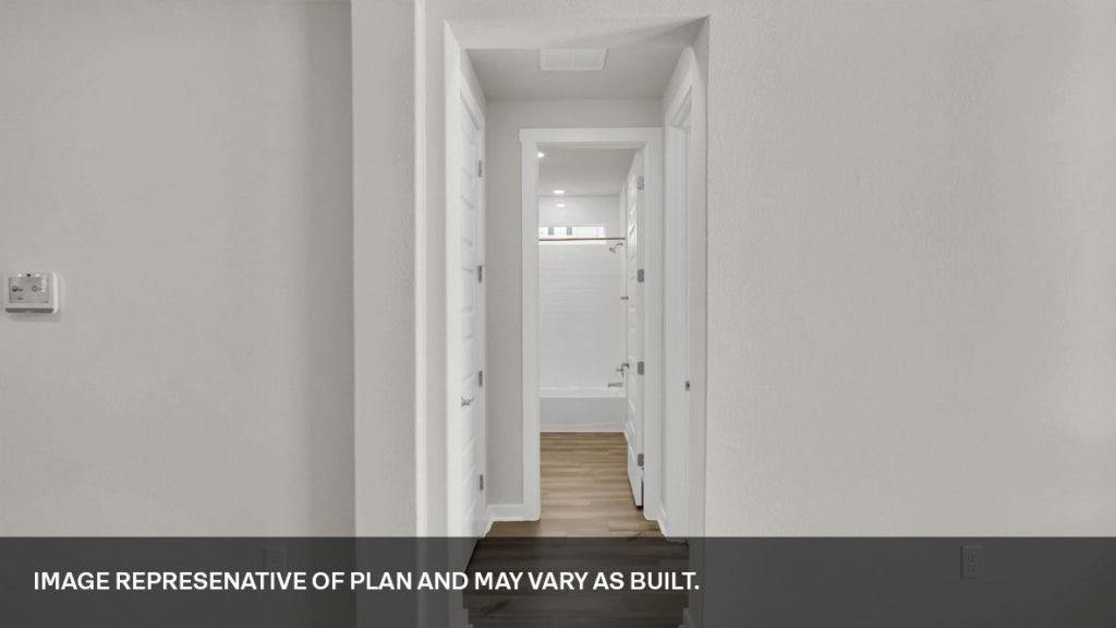 ESTIMATED COMPLETION MAY. Images representative of plan only and may vary when built. Take a tour of the stunning Homer floorplan at Rosenbusch Ranch in Leander, TX. The Homer is a two-story floor plan offering 3,008 sq. ft. of living space across 5 bedrooms, 4 bathrooms, and a loft. The long foyer leads into a spacious family room overlooking the kitchen and dining area. The kitchen features Silestone or quartz countertops, stainless steel appliances, decorative tile backsplash and a large kitchen island. The large main bedroom, bedroom 1, is off the family room and offers separate tub and shower and huge walk in closet. Making your way upstairs, you will be impressed by the spacious loft that overlooks the living area and kitchen below. Transform this loft into a space of your choosing such as a media room, game room, or home gym. You will also find 3 more bedrooms upstairs and 2 full bathrooms. Each bedroom has carpeted floors and a closet. This home comes included with a professionally designed landscape package and a full irrigation system as well as our America's Smart Home package that offers devices such as the Qolsys IQ Panel, Video Doorbell, Alarm.com app, Honeywell Thermostat, Kwikset Smart lock, and more.