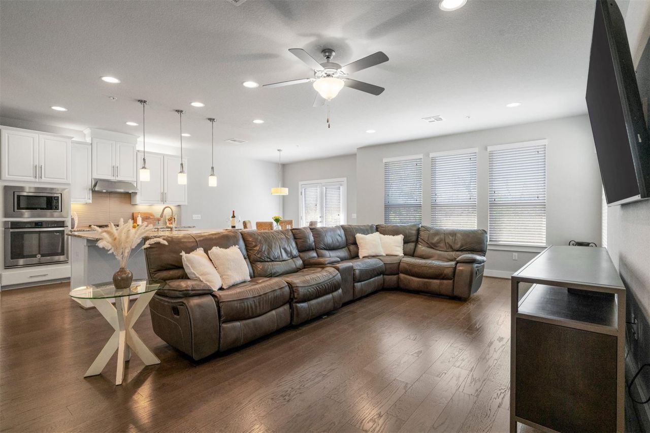 Living in this pocket of South Austin means youre less than 10 minutes from the caffeine fix at Radio Coffee or a Saturday morning grocery run at the nearby HEB. This 78745 end-unit condo in the gated Highmark Condo community offers a 3-bedroom, 2.5-bathroom layout that works well for those who want to be 7 miles from the center of Downtown Austin and 10 miles from the airport. Being just off South Congress, you have a straight shot to the local dining at Ramen Tatsu-Ya, Chuys, and Five Four, along with HEB, or the massive variety of retail and entertainment over at Southpark Meadows. This South Austin location is an ideal anchor for anyone navigating the I-35 or Highway 71 corridors while still wanting a quiet, residential atmosphere among mature trees. The split-level entry features a staircase that immediately divides the floor plan. Head upstairs to find the main social areas, where the kitchen centers around a large island, with granite countertops, stainless appliances, tile backsplash and 42-inch cabinetry. The fridge stays with the property, as do the washer and dryer. Just off the dining area, a door leads out to an elevated deck. This outdoor space faces a private tree line, offering a quiet spot for morning coffee. The primary suite, with an ensuite bath, is tucked on this level as well, keeping the main sleeping quarters separate from the guest rooms below. The lower level offers a second living room that could easily serve as a game room or a home office. Two additional bedrooms and a full guest bathroom are located down here, making the layout feel more like a traditional house than a typical condo. You can access this level directly from the two-car garage or a private side door. That side entrance is a major plus for pet owners, leading straight to the backyard. Whether you are heading to a show on South Congress or catching a flight, this 78745 location couldn't be more perfect!