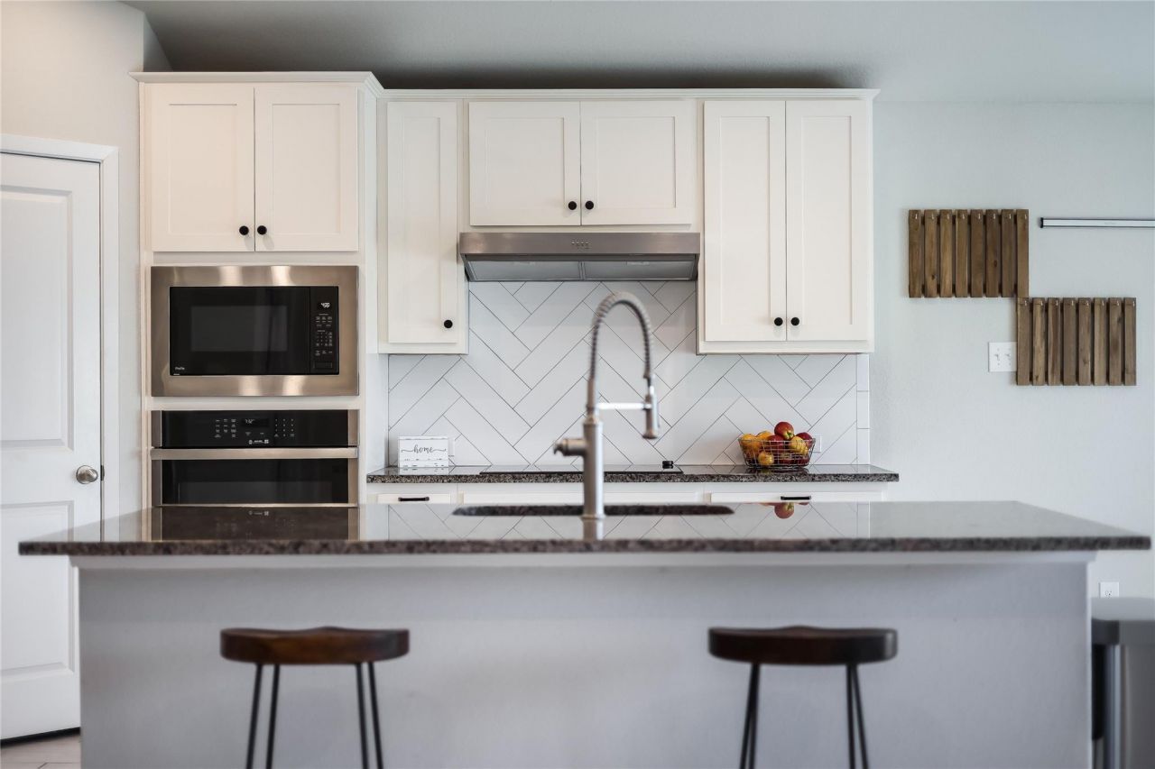 A beautiful, modern single-story with open-concept design, abundant natural light and high ceilings. No carpet?just hard tile throughout. Enjoy the kitchen with a ton of upgrades and top of the line appliances: LG smart fridge with craft ice; Bosch 300 series quiet model stainless dishwasher; built in GE Profile convection oven and microwave; Samsung front load steam washer; Samsung steam dryer; and Samsung 30 smart induction cooktop with flex zone and virtual flame. Ceiling fans in every bedroom and the living room ensure comfort year-round. The primary bedroom is spacious and has an en-suite bathroom with double vanity, large mirror, and walk-in closet access. The backyard is a dream, featuring raised beds, hardscaping, and a private fence with a mix of wood and corrugated metal. Tech upgrades include a Kwikset Wi-Fi Smart Lock, Ring solar cam, and MyQ garage opener. Ample driveway space. Includes small strip of land behind back fence. You'll enjoy private lake access as a Lago Vista POA member for just $240/year. As a member, you also have access to a pool, fitness center, fishing well, tennis courts, pickleball courts, and more. Other nearby activities and attractions, besides the obvious lake activities, include a winery, a brewery, the Lago Vista Golf Course, disc golf, multiple restaurants, performing arts, and hiking trails in a national refuge. Just 30 minutes to Cedar Park and less than an hour to downtown Austin.