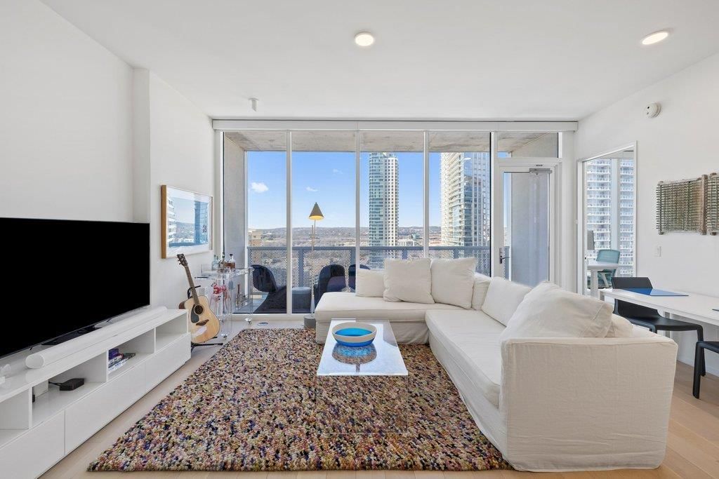 Set on a coveted west-facing corner, this residence offers a front row view of iconic Austin scenery, overlooking Lady Bird Lake and extending to the Texas State Capitol. A highly sought after open concept floorplan creates an easy, natural flow throughout the home. Designed for entertaining, the kitchen opens directly into the living area and out to the balcony. The primary suite provides a calm retreat with custom California Closets and a spa inspired bath. A separate study functions well as a guest room or second sleeping space, while two full bathrooms and two reserved parking spaces add everyday ease. Residents enjoy direct access to the trail and lake, along with a thoughtfully curated collection of amenities including a 24 hour concierge, heated pool, fitness and yoga studio, private theater, dog park, additional guest rooms, and inviting indoor and outdoor gathering spaces all just minutes from the best of Austin.