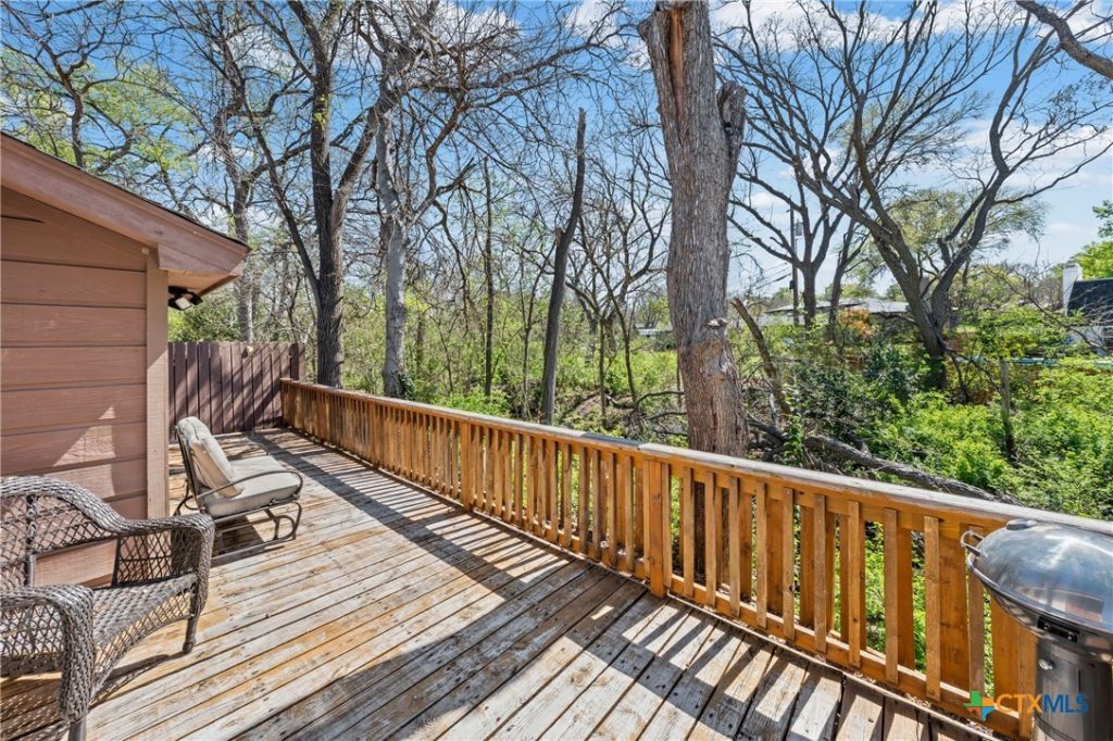 This charming 3-bedroom, 2-bath garden home offers comfort, character, and a peaceful backyard setting. Inside, you'll find updated flooring throughout and modern appliances that make the kitchen both stylish and functional. A beautiful double-sided fireplace creates a warm focal point between the living and dining areas, adding a cozy touch to the heart of the home. The office features built-in bookshelves, providing the perfect space for working from home, reading, or staying organized. Step outside to a spacious deck overlooking a wet-weather creek, offering a serene spot to relax, entertain, or enjoy the natural surroundings. Located in a welcoming community with access to a neighborhood pool, this home combines low-maintenance garden home living with thoughtful updates and inviting spaces both inside and out.