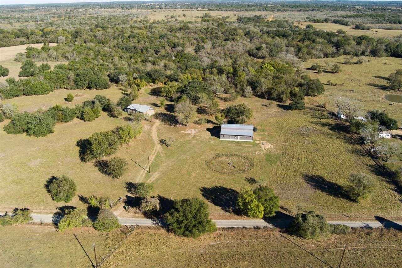 Beautiful 49.5 acres just 10 minutes to Smithville! Numerous horseback riding, walking, and hunting trails exist throughout the property which is bordered by Pin Oak Creek to the east. Wildlife lovers will enjoy watching the turkey, deer, and birds visiting the pond during sunrise right off the covered back porch! The updated 2018 Palm Harbor Arlington 60 is an 1800 sq. ft. 4/2 with flowing open floor plan and huge kitchen island and a living room fireplace. Large front porch with beautiful sunset views. There are many large elms and some truly magnificent live oaks to gather under for any occasion! Power has been run to the central live oak and garden shed near the 4 raided beds. The 3000 sq ft metal barn was just completed in 2024 with many amenities: insulated garage, tack room, large bathroom with concrete walls that provide storm shelter, and a shop room that can double as a caretaker unit! 14ft wide drive-through alley with metal roll-up doors on each side, plus a 3rd roll-up for the garage! Four 12x12 concrete floored stalls lead into 12ft covered runs with power and water at each stall! 5th stall area serving as a wash bay with drain and barn sink. Well water is pumped via a constant pressure pump housed in the barn, and reliable internet is available for staying connected. Only 10 minutes to downtown Smithville, 25 minutes to Bastrop, and 40 minutes to the Austin area! Ag exempt! No minerals convey. The owners took great care to make this a serene and special home, and it is an absolute must see if you are ready for turn-key country living in beautiful Central Texas!Only 10 minutes to downtown Smithville for live music, fine/casual dining, shopping, etc. Only 25 mins to downtown Bastrop and 35 mins to SpaceX, Boringco, X, Starlink offices, 35 minutes to ABIA, TESLA, 130! This is a must see if you want a nice recreational property or horse property!