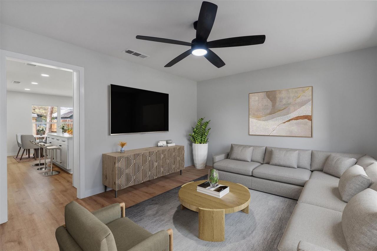 Experience the quintessential South Austin lifestyle in this stunningly remodeled masterpiece in the heart of Emerald Forest. Expertly reimagined and transformed from the original layout into a sophisticated sanctuary featuring a spacious primary suite with a private bathroom and huge walk-in closet. Situated on a generous 0.173-acre lot, you are surrounded by old Austin charm where heritage oaks provide a lush, shady canopy for evening strolls and neighbors still wave as you pass by. No detail was overlooked in this comprehensive 2024 top-to-bottom renovation. The interior features brand-new vinyl plank flooring, all-new baseboards, and fresh paint inside and out. Behind the scenes, the home offers ultimate peace of mind with all-new electrical, new plumbing, a new water heater, and a modernized HVAC system featuring brand-new ductwork in the attic. The chefs kitchen is a showstopper, redesigned with all-new cabinetry, huge island, sleek countertops and designer backsplash. Windows have been replaced with new energy-efficient glass, and stylish new ceiling fans and light fixtures have been installed throughout. The flexible 3-bedroom, 2-bath layout includes plenty of space for a home gym, quiet office or guest room. Outside, the fenced rear yard serves as a private retreat with a firepit for chilly evenings and plenty of space for kids and pets. Welcome Home - you are just minutes from Austins legendary food and nightlife, including Leroy & Lewis BBQ, Radio Coffee, Sagebrush, and The Little Darlin. Located near Central Market, Joslin Neighborhood Park, and Recess Pickleball, this home offers a lightning-fast commute to Downtown, Zilker Park, or the Airport via I-35 and MoPac.