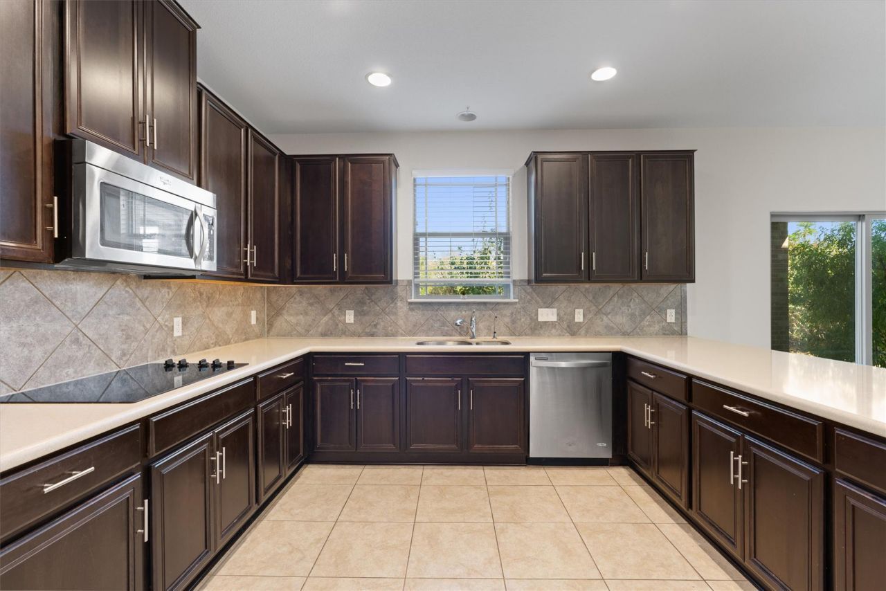 Tucked into the desirable Crystal Crossing community, this lovingly maintained two-story home offers comfort, space, and convenience in a peaceful setting. Charming curb appeal welcomes you with a covered front porch and manicured landscaping. Step inside to a bright and open interior featuring an abundance of natural light and ceramic tile flooring throughout the main level. The spacious living room flows seamlessly into a large kitchen equipped with ample cabinetry, generous counter space, sleek quartz countertops, and stainless-steel appliances?including a built-in double oven, electric cooktop, and refrigerator (to convey)?making it ideal for everyday living and entertaining. Upstairs includes new carpet installed 7/2025, and the generous primary suite offers a true retreat with a walk-in closet and a well-appointed en-suite bath featuring a dual vanity and a walk-in shower. A versatile game room and two additional guest bedrooms provide plenty of space for work, play, or relaxation. The covered back patio overlooks a huge, tree-shaded backyard that feels private and serene. In addition to the covered area, a spacious open-air slab offers the perfect spot for patio furniture, a fire pit, or casual entertaining around the private hot tub?creating a flexible outdoor living space you can enjoy year-round. Crystal Crossing residents enjoy access to a community park, playground, and walking trails. Located within highly rated Leander ISD and just minutes from shopping, dining, and major roadways, this home offers the perfect combination of neighborhood charm and everyday convenience. Schedule a showing today!