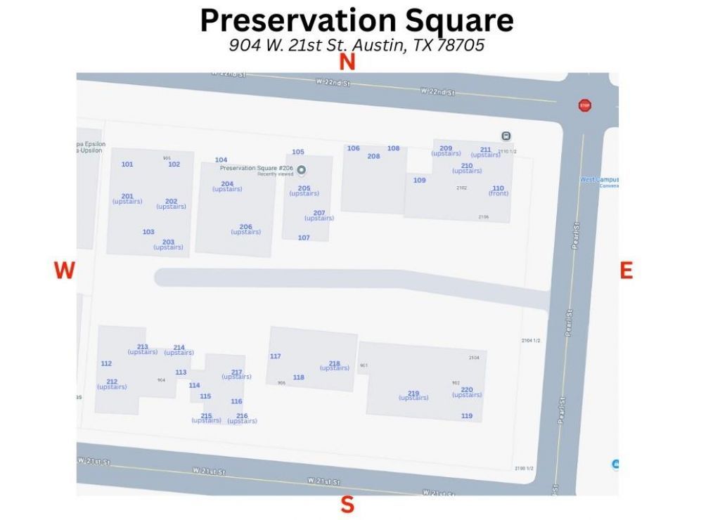 Looking for something different in student living? Welcome to Preservation Square, a hidden gem of townhouse-style units located in the heart of West Campus ? just minutes from The University of Texas at Austin. Our condos offer an authentic charm you wont find in the typical high-rise or box-style apartments in West Campus. With features like high ceilings, antique spiral staircases, and warm, home-like layouts, these arent cookie-cutter units ? theyre unique, comfortable spaces that feel like home away from home in the heart of Austin. You'll be: Steps away from University of Texas at Austin (just a 10-minute walk or catch the bus right on the corner) Next door to the West Campus Market for snacks, drinks, and grocery essentials. Surrounded by new, Class A buildings, giving you access to friends and amenities ? without paying the ridiculously high price Our residents rave about the comfort, character, and unbeatable location. Whether you're studying, socializing, or just relaxing, this is a space that lets you do it all. Come see why students are choosing character over cookie-cutter. Now leasing ? limited availability!